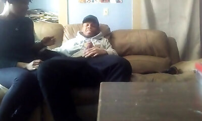 Gooning stepson is caught by his shameless step-mom who then helps him jizm