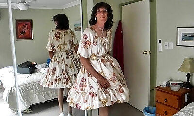 Crossdresser michelle frolicking in floral frock