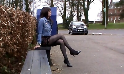 Mooie crossdresser heerlijke gerokte billen loopt buiten
