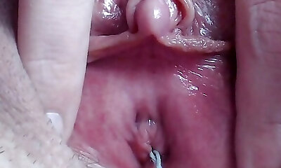 Extreme closeup getting off with huge clitoris wet orgasm