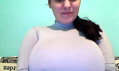 Enrapturing big tittied teen is playing with her jugs and succulent looking pussy