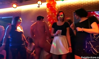 A Foursome and a Threesome Going on in Party with Hot Brown-haired Nubiles