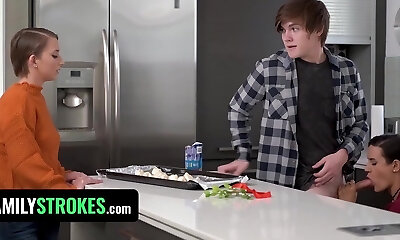 Kinky stepmom Cent Barber tricks stepkids into 3some fuck