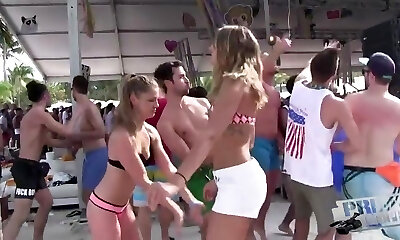 Ladies in the hot tub have a hardcore party with their studs