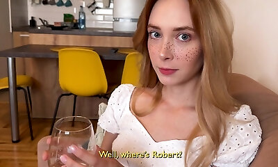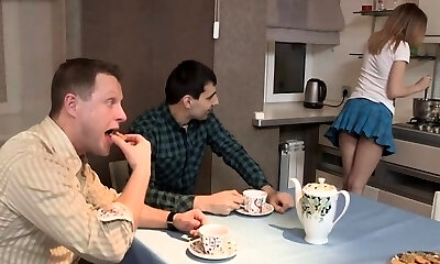 Horny fair haired teen swallowed a cup of tea and set to suck big sugary penis