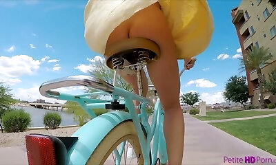 Pantless doll Avi Love is riding her bicycle before a molten sex with stranger