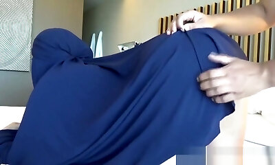阿拉伯burqa少女戳在所有三人孔,和她喜欢它! -直肠内射精!
