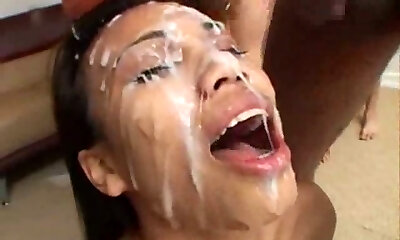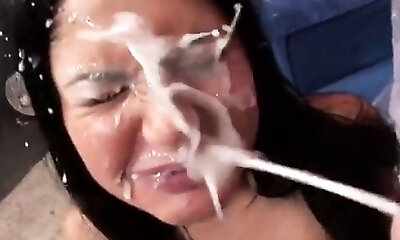 肮脏的颜射穿着她的脸彻头彻尾的怪异