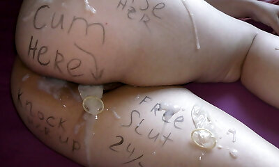 一个preggo女孩得到gangbanged和显示与jizm