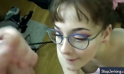 一个十几岁的学生把一个教育家的jizz-shotgun放到球囊上