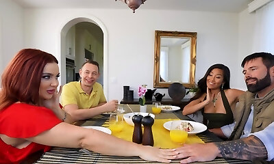 年轻夫妇交换伴侣参加一个奇妙的双重会议