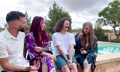 德国放荡的人夫妇开关美洲狮妻子在4some Pummel