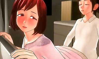 Gooning stepson is caught by his shameless step-mom who then helps him jizm