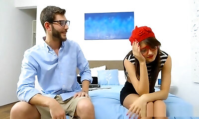 Naughty stepdaughter Evie breeds with her horny stepdad