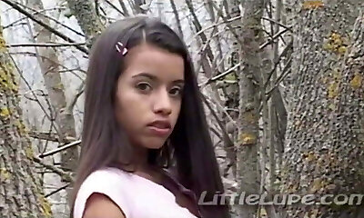 Little Lupe wanks her tight pussy in the woods