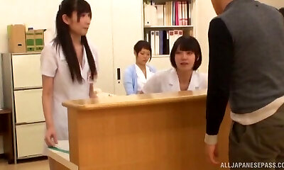 Japanese nurses drop their underpants to ride two lucky patients