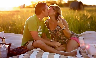 Quite buxom Czech camping chick Nicole Love works on two strong rods