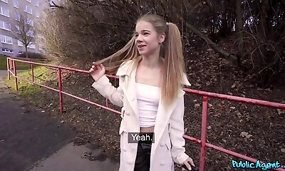 Slim Teen With Pigtails Pleases a Stranger With Outdoor Blowjob And Lets Him Plumb Her In a Hallway