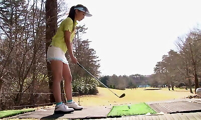 Kinky Asian golf player Tomoyo Isumi is poked both mish and doggy