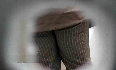 White booty of an amateur lady in the toilet room on hidden cam video