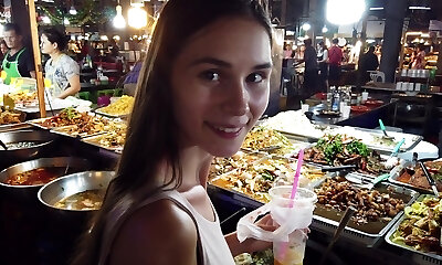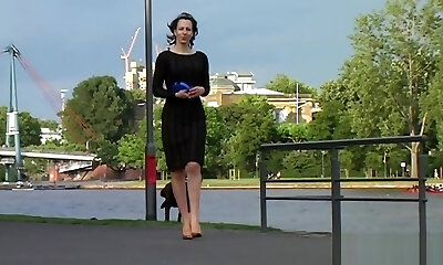 苗条的俄罗斯金发手指通过随机旁观者在她的驾驶座